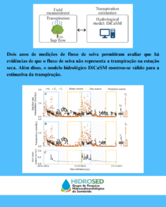 Os dois anos de medições de fluxo de seiva permitiram avaliar que há evidências de que o fluxo de seiva não representa a transpiração na estação seca. Além disso, o modelo hidrológico DiCaSM capturou a dinâmica sazonal esperada da transpiração, com valores próximos de zero durante a estação seca.